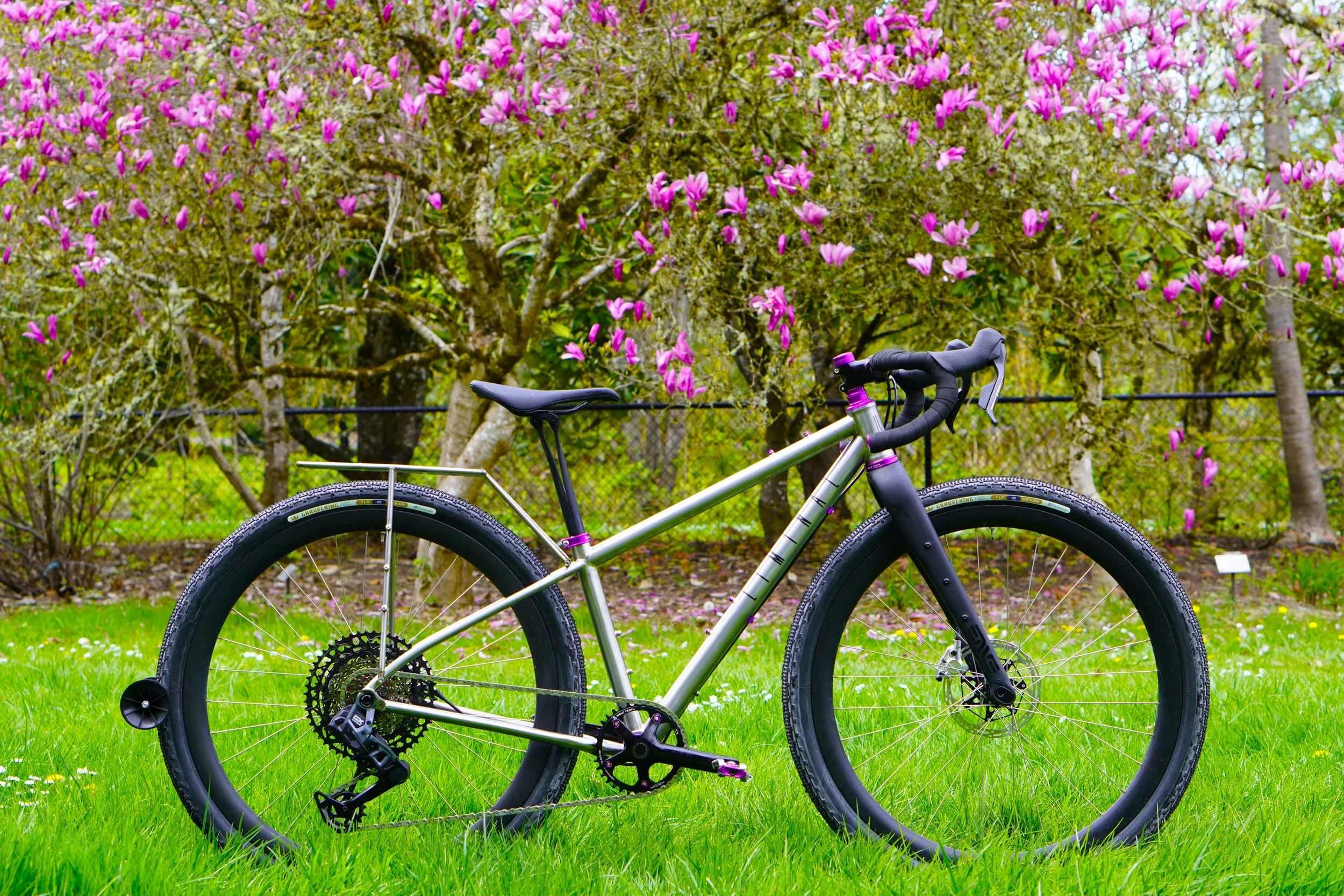 A custom titanium rack rounds out the frame and will provide a platform for lashing gear to, as well as standard panniers or anything-style cages.